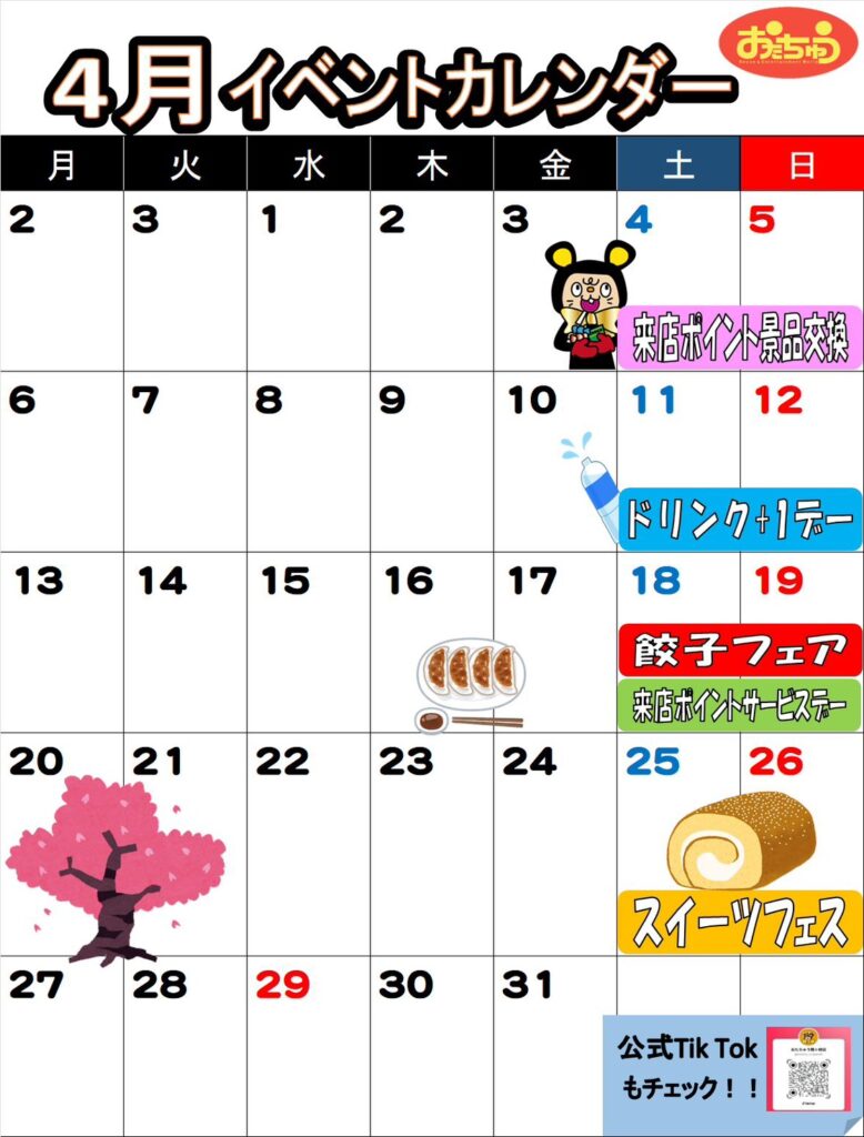 🎪イベント情報🎪 4月のイベントカレンダー更新しました…